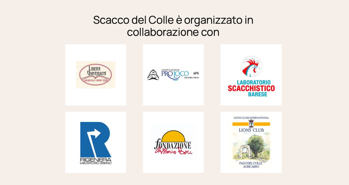 Un ringraziamento speciale anche al Comitato Regionale Pugliese della Federazione Scacchistica Italiana, che ha concesso il patrocinio per tutte le fasi di Scacco del Colle, accompagnando cosรฌ il torneo con un riconoscimento ufficiale che ne rafforza il valore sportivo e culturale.